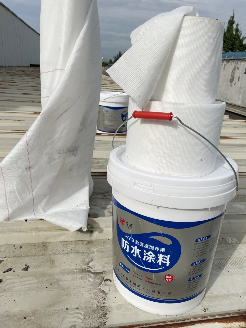 我公司于2021年8月施工的四川省成都市高新技術產業開發區(西區)西區大道1577號富通光纖光纜(成都)有限公司廠房彩鋼頂防水補漏施工,廠房之前下雨漏水較為嚴重,業主之前也采取了一些方式處理,但是并未解決到問問題,下雨依然漏雨厲害,后面我公司人員到現場進行勘察分析之后,建議采用SYR金屬屋面專用防水涂料配合專用縫織聚酯布進行發送施工。業主方經過考察研究后決定采用我公司建議方案。我公司施工后很好的解決了此廠房彩鋼頂的漏雨難題。