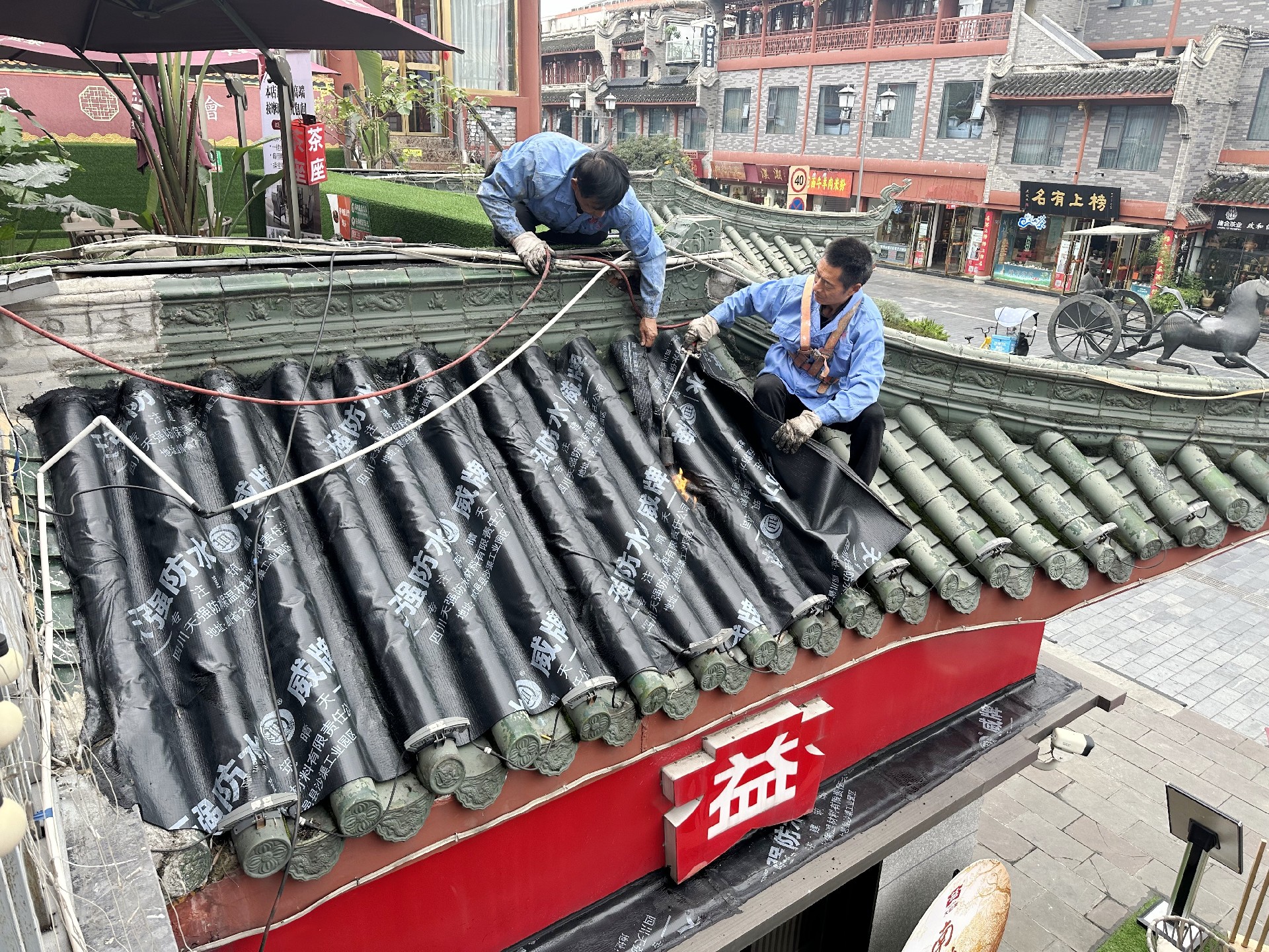 在開始施工前,我們首先進行了現場勘查,了解了屋面的具體狀況,包括斜坡的角度、瓦片的材質和狀態、以及需要保護的設施等。根據這些信息,我們制定了詳細的施工方案。