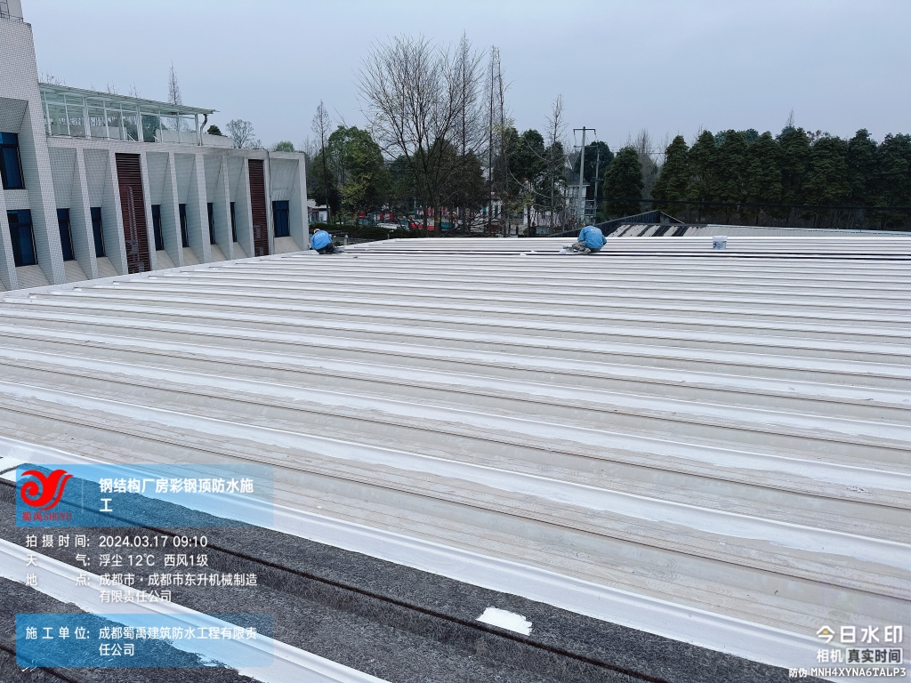 成都市東升機械制造有限責任公司廠房彩鋼頂及天溝防水補漏工程案例介紹