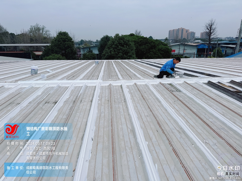 經過成都蜀禹建筑防水工程有限責任公司的精心施工,成都市東升機械制造有限責任公司的廠房彩鋼頂及天溝防水補漏工程取得了顯著的成果。處理后的廠房防水性能得到了顯著提升,客戶對此表示非常滿意。