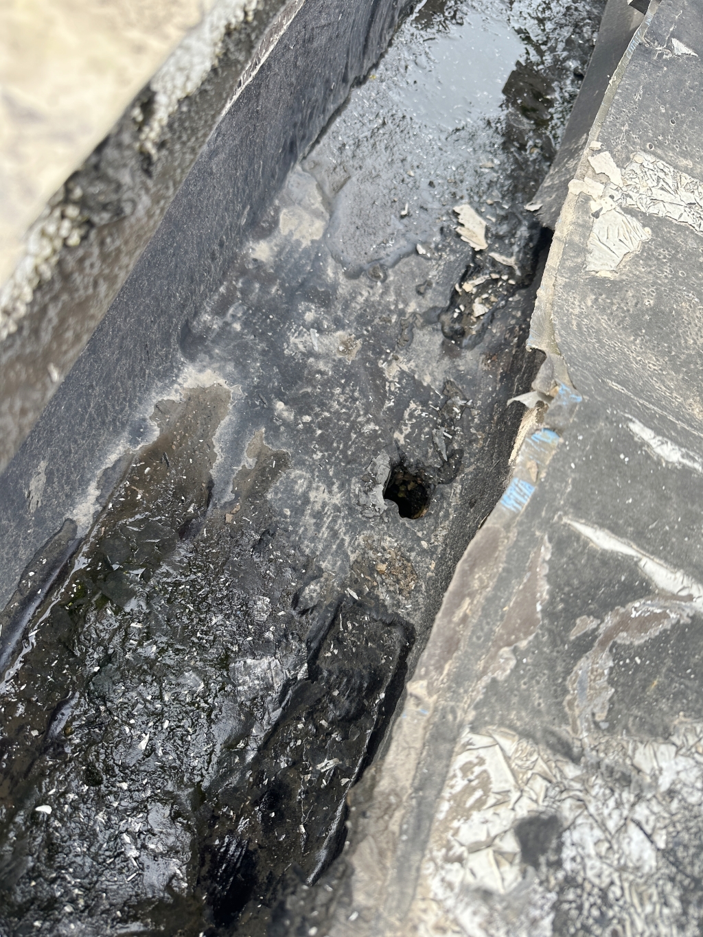 以上圖中可以看到,天溝都已經銹蝕穿孔,可以看到外面亮光了