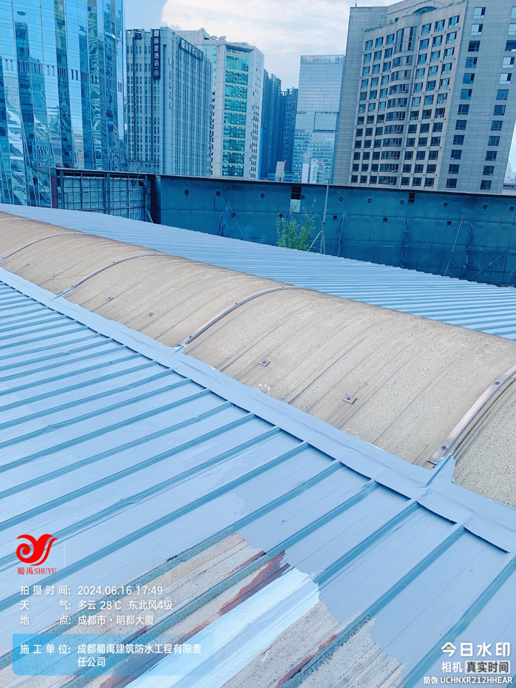 【成都蜀禹建筑防水工程有限責任公司工程案例宣傳】—— 明都大廈玻璃頂與彩鋼頂防水防腐翻新,重塑建筑防護新篇章
