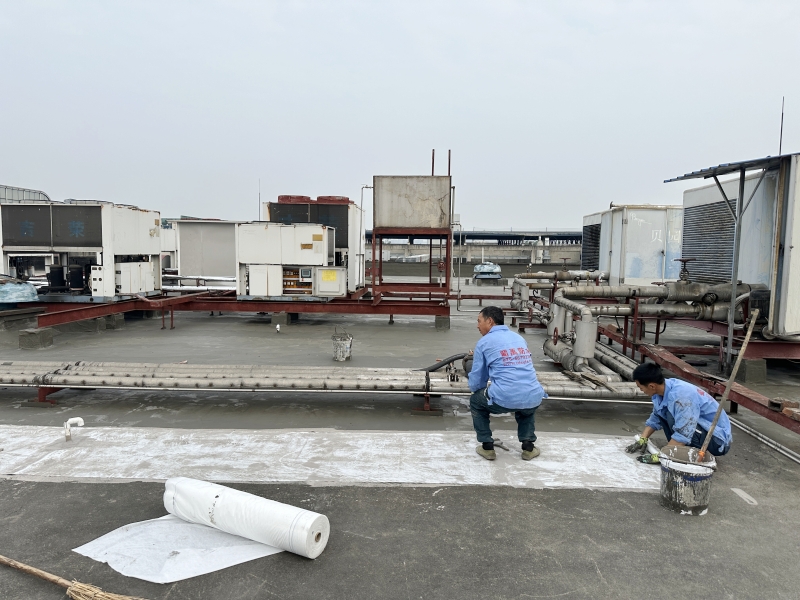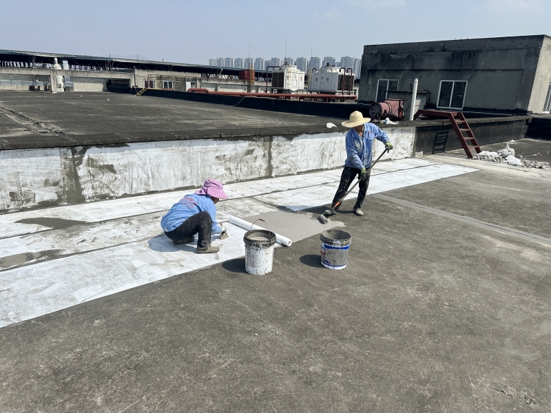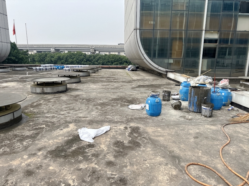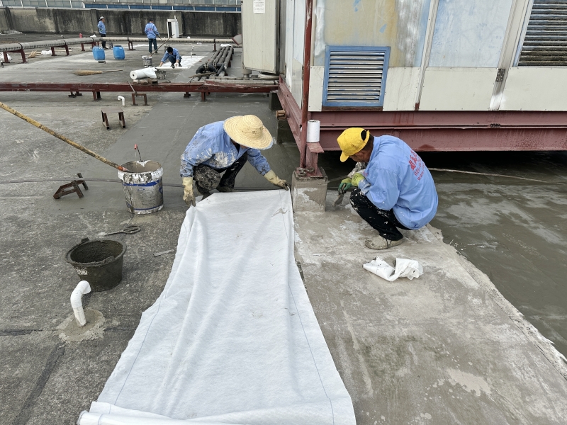 基層處理:首先,施工團隊對屋頂表面基層進行了徹底的清理,確保無灰塵、油污等雜質,為后續防水層施工打下堅實基礎。針對基層表面的局部不平整和翻砂現象,進行了砂漿修補和涂刷混凝土液體硬化劑處理,有效增強了基層的強度和穩定性。